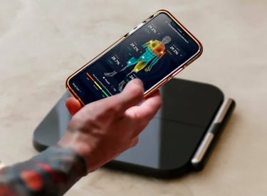 It uses an 8-electrode, full-body system: foot sensors + hand-held sensors — which is more advanced than basic smart scales (which usually only send current through the lower body). This “segmental measurement” is meant to assess arms, legs, torso separately, giving more detailed distribution data.